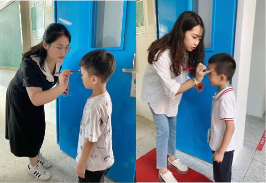 9月24日上午,一年级老师们早早地来到班级,等候一年级小萌娃的到来,为他们点朱砂,启智慧。在古代,学童入学前,都会由启蒙师长用红色朱砂在学童额头正中点上红痣,意味着为孩子开启智慧。老师们用朱砂在孩子们的眉间点上红点,寄托着美好的愿望,以此期望孩子们从此眼明心亮,开启智慧。
