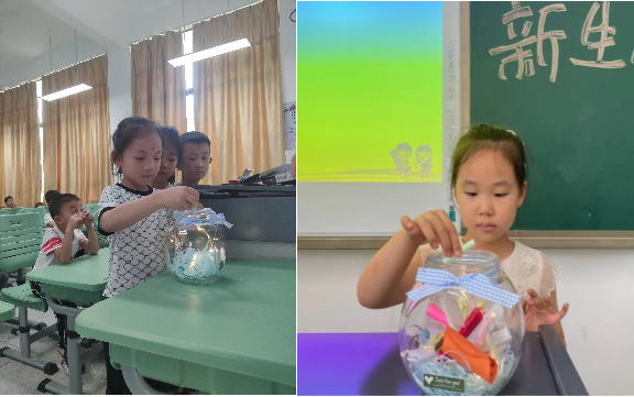 为庆祝自己成为小学生,孩子们提前书写好了梦想心愿卡,并投放进了许愿瓶。老师会帮助孩子们珍藏这些心愿卡,等六年级毕业时,老师会将他们的心愿卡打开,一起来看看六年前许下的心愿是否已达成!