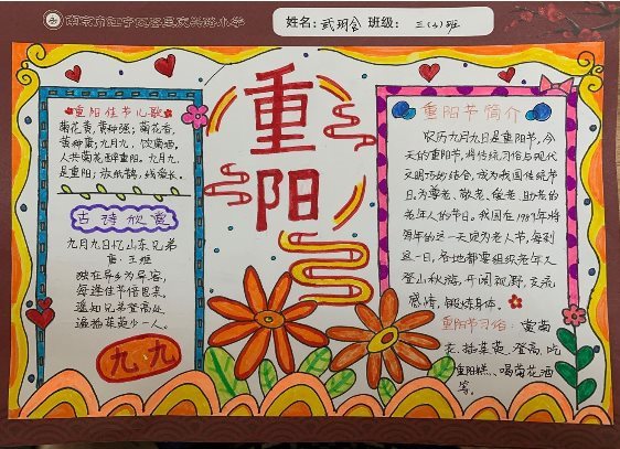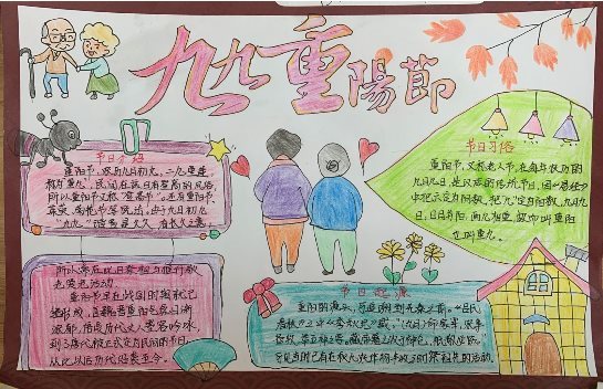 在这个特别的日子里,孩子们用自己的行动践行着敬老、亲老、爱老、助老的精神。他们准备了一份份漂亮的手抄报,将自己想要对长辈说的话,画出来。孩子们用美妙的绘画描述了爱的模样,用稚嫩的笔触书写下自己的敬老之情。